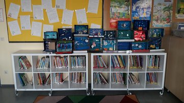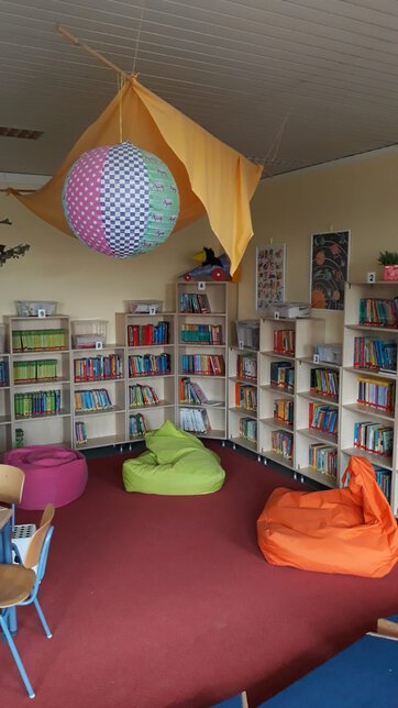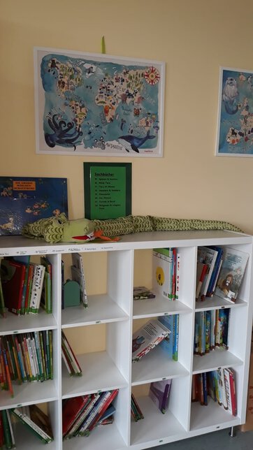 Den Namen haben die Kinder gewählt und er passt hervorragend! Hier tauchen die Schülerinnen und Schüler einmal pro Woche in fremde Welten ein. Die Auswahl an Büchern ist groß, hochaktuell und teilweise mehrsprachig.