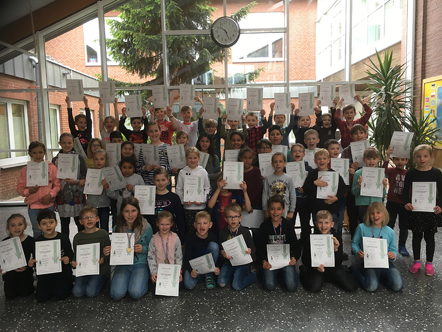 Sena aus der 3a, Ensar aus der 3b, Yigit aus der 3c, Christin, Tatjana, Sujitha, Mariam und Davud aus der 4a, Logan aus der 4b und Ruiea und Efe-Turan aus der 4c.