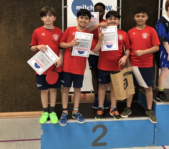 Die besten Tischtennisspieler der 4b heißen Ceylen, Elif, Adian, Fedi und Marcello. Sie wurden beim Schulturnier 3.