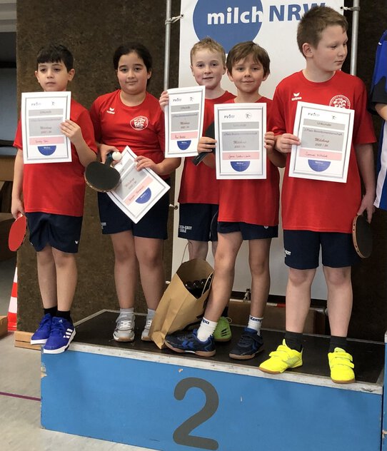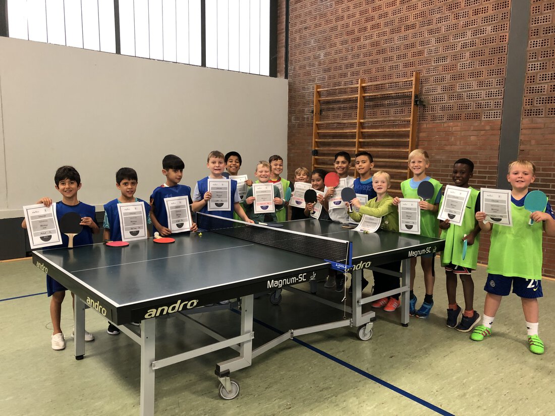Jedes Jahr veranstalten wir ein schulinternes Turnier. Die Gewinner-Teams (Team 3b und Team 4b) haben in Dortmund beim Bezirksturnier 2019 prima mitgespielt und eine tolle Teamleistung gezeigt. Herzlichen Glückwunsch!