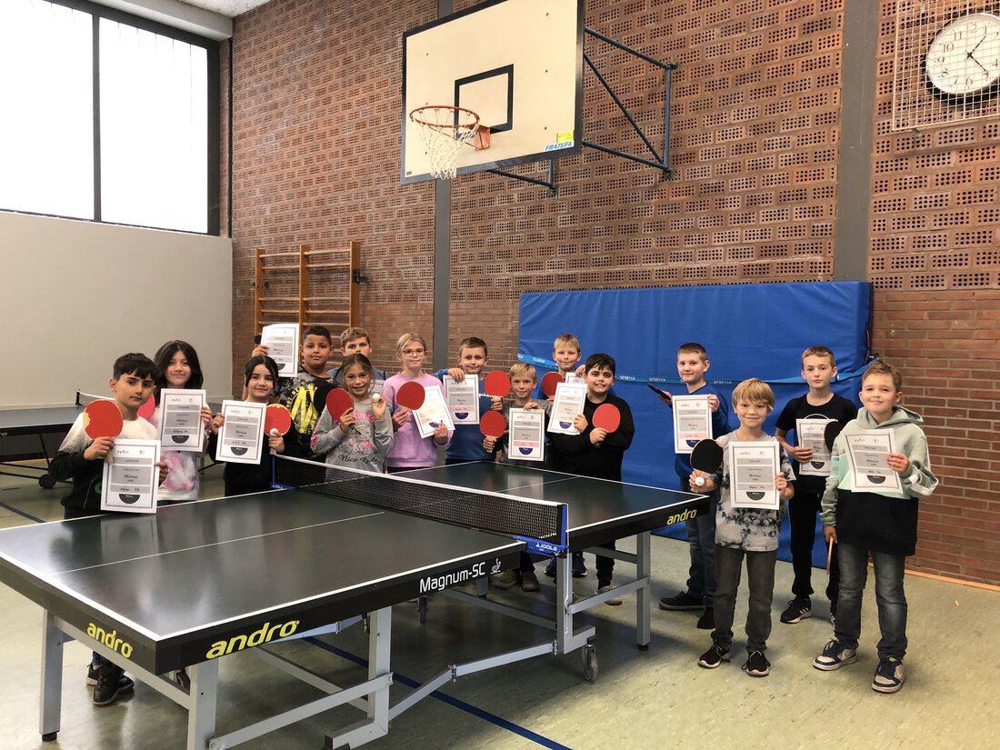 Kurz vor den Herbstferien, Ende September 2022, nahmen die besten Tischtennisspieler/innen aus den Klassen 3a, 3b und 3c, sowie 4a, 4b und 4c an unserem Schulturnier teil.